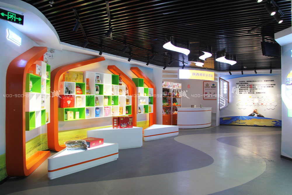 糧倉造型,獨具匠心的產(chǎn)品展架設(shè)計,陳列糧農(nóng)產(chǎn)品,配合展示糧農(nóng)集團服務(wù)體系。微縮示范店,線上體驗,線下銷售的體驗,及實體售貨柜陳列。