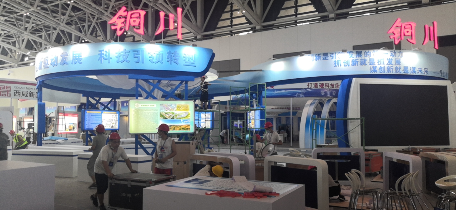兗礦集團(tuán)展臺搭建作業(yè)中
