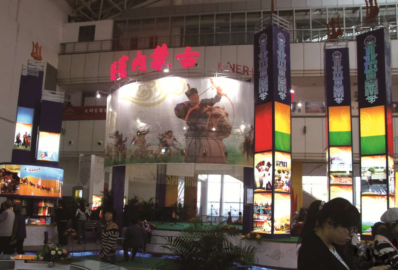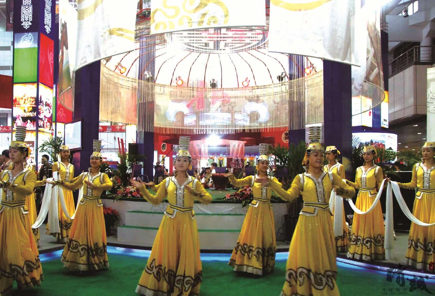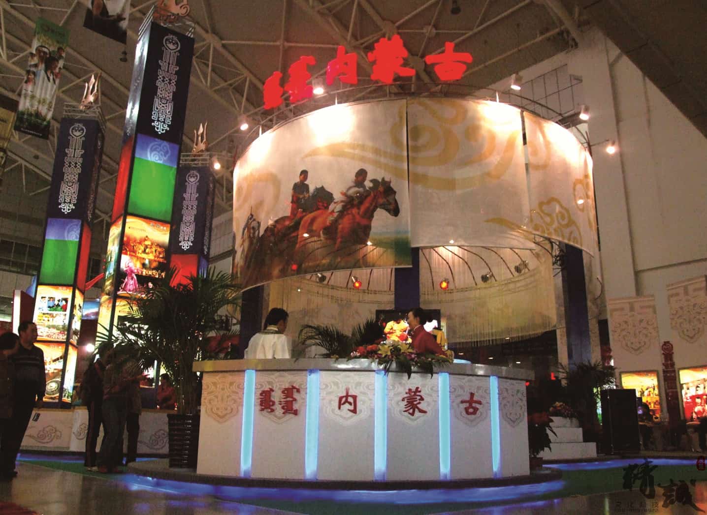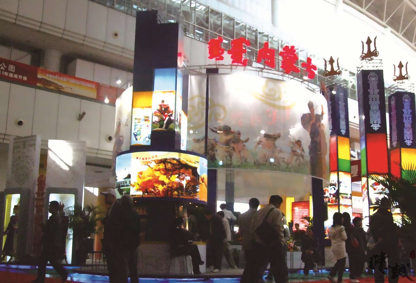 展位設計總體美觀大方,圖文并茂,富有民族特點,采用聲、光、電相結合的現(xiàn)代展示手法,做到“動態(tài)感”和“時代感”的完美結合?,F(xiàn)場的載歌載舞的熱情氣氛,展示出了草原的文化和獨具北疆特色的旅游基地。