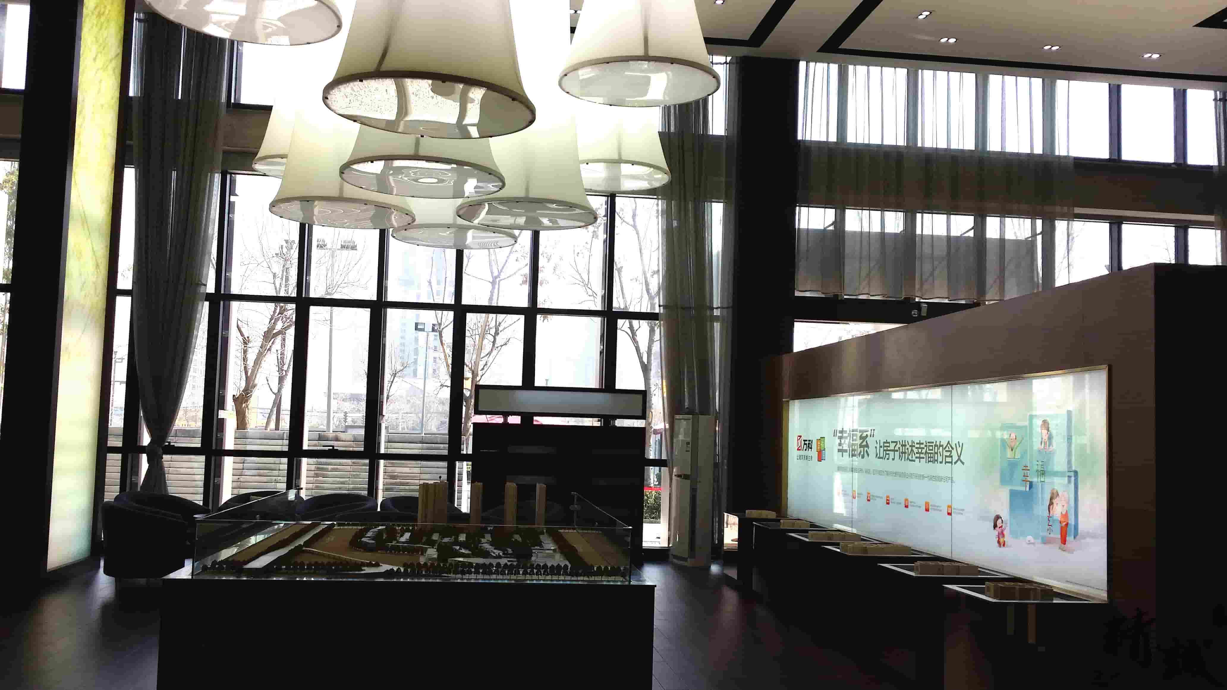 簡(jiǎn)介—— 對(duì)于萬(wàn)科金域東郡的裝飾裝修設(shè)計(jì)整個(gè)展廳色調(diào)以穩(wěn)重的棕色為主,用適當(dāng)?shù)慕鹕鳛辄c(diǎn)綴,顯得整個(gè)展廳高端、大氣。大廳頂部懸掛的