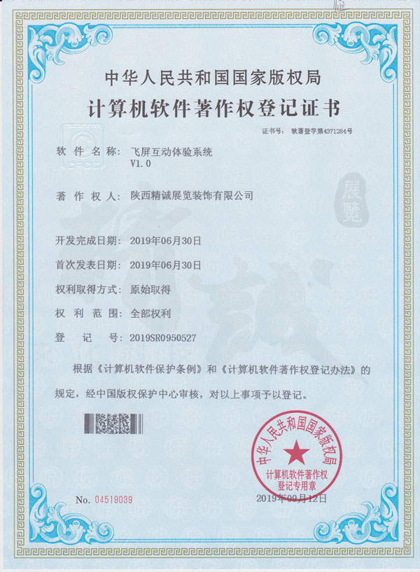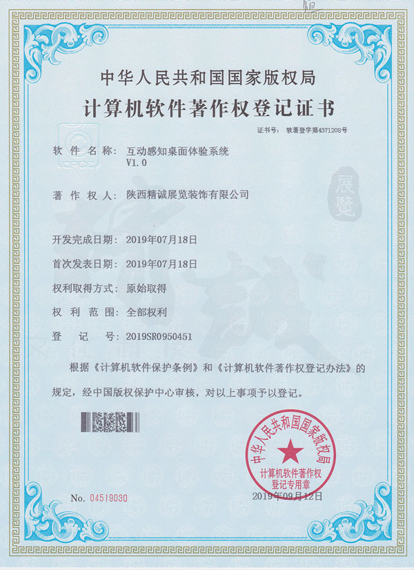 - 陜西精誠展覽裝飾有限公司計算機(jī)軟件著作權(quán)登記證書 -